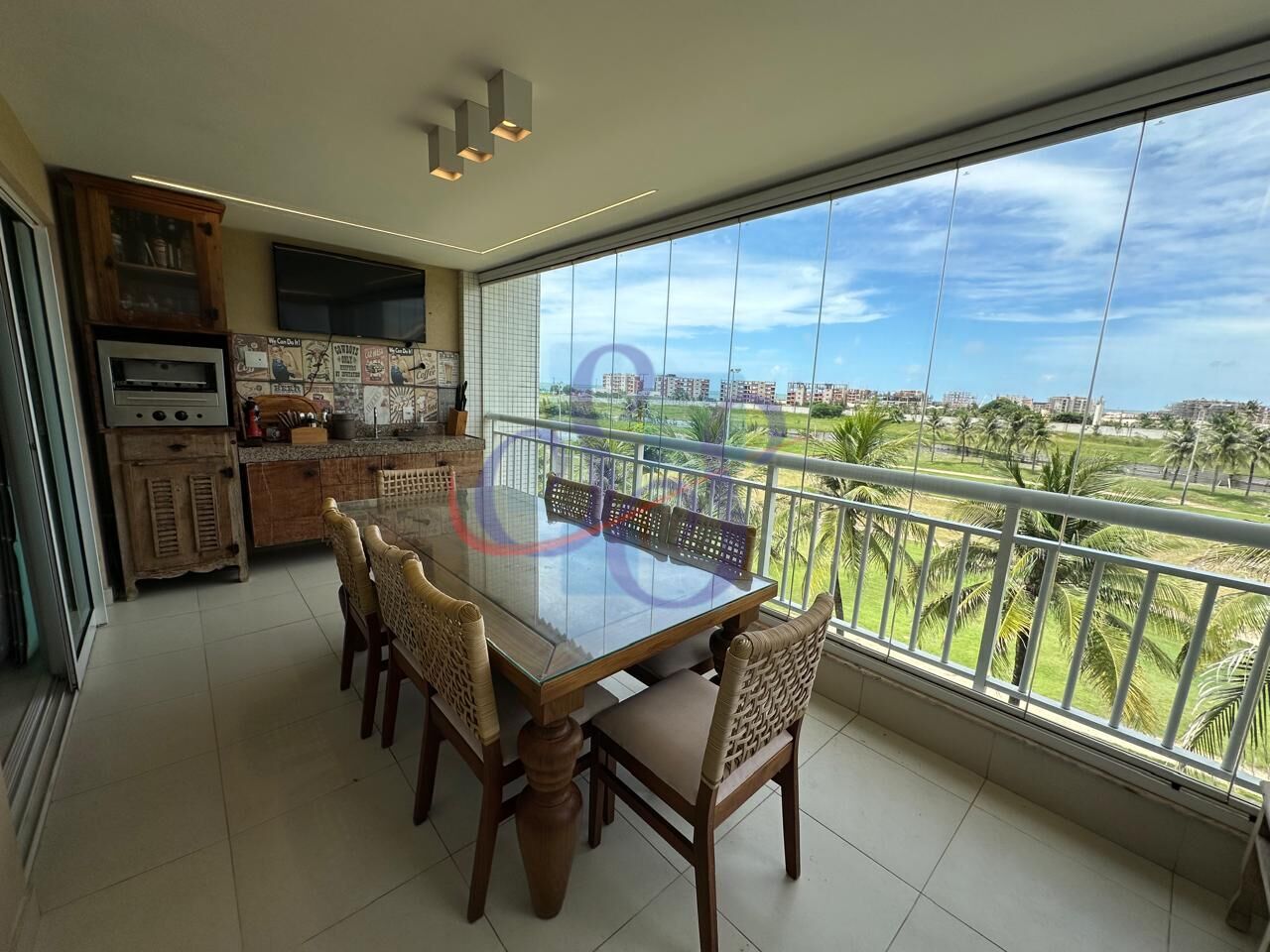 Belíssimo apartamento nascente no Golf Ville Resort! Imóvel mobiliado e com linda vista mar, possui 115m² de área privativa. Super ventilado, todo projetado com móveis de excelente qualidade e iluminação planejada, sala em 2 ambientes, varanda gourmet com cortina de vidro e bancada com churrasqueira, 3 suítes climatizadas, cozinha equipada com armários, eletrodomésticos e utensílios. Além disso o apartamento conta com área de serviço com aquecedor de água para os chuveiros e máquina de lavar, 2 vagas de garagem.