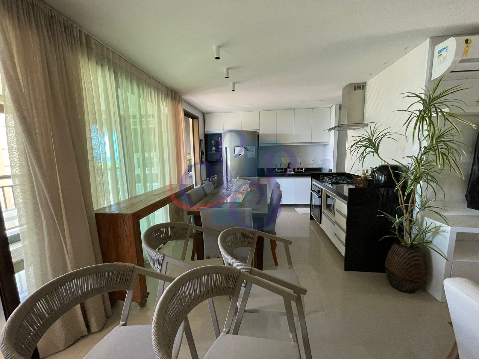 Apartamento de alto padrão com vista para o mar, em condomínio fechado! Imóvel com 101,5m² de área privativa. Apartamento no primeiro andar, mobiliado com móveis de ótima qualidade. Conta com sala de estar e jantar. Iluminação planejada. Varanda gourmet, iluminação planejada. Cozinha equipada com armários. 3 quartos, sendo 1 suíte. Localizado próximo à piscina, o apartamento também conta com 2 vagas de garagem.