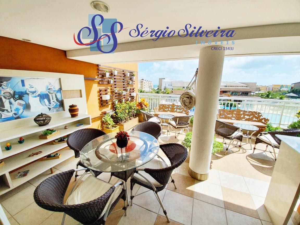 Cobertura duplex mobiliada e nascente no Condomínio Vila do Porto no Porto das Dunas com 194 m², distribuído em: 4 quartos (sendo 2 suítes; a suíte master com closet e com vista para a piscina; todos os quartos possuem ar-condicionado), área de serviço com banheiro, wc social, dispensa, cozinha (equipada com armários), sala de jantar e de estar integrada, varanda ampla gourmet com bancada de apoio com revestimento de vidro contendo a pia e uma churrasqueira a gás, além, do frigobar e armários, 3 vagas de garagem. O imóvel é espetacular com mobília de excelente qualidade inclusa, iluminação projetada de LED em todos os ambientes.