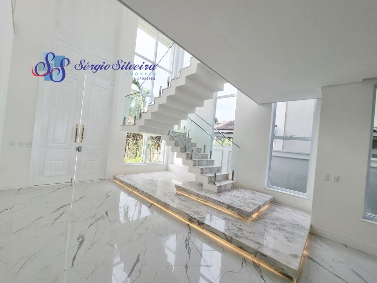 Luxuosa casa duplex alto padrão Neoclássica no Alphaville Fortaleza, Fino acabamento, com um terreno de 525 m², 500 m² de área construída, 5 suítes sendo 4 delas com espaço para closet e a máster com varanda privativa, cozinha integrada com a área de lazer, dependência de empregada completa, área de serviço, lavabo, piscina com hidro e prainha, 6 vagas de garagem.