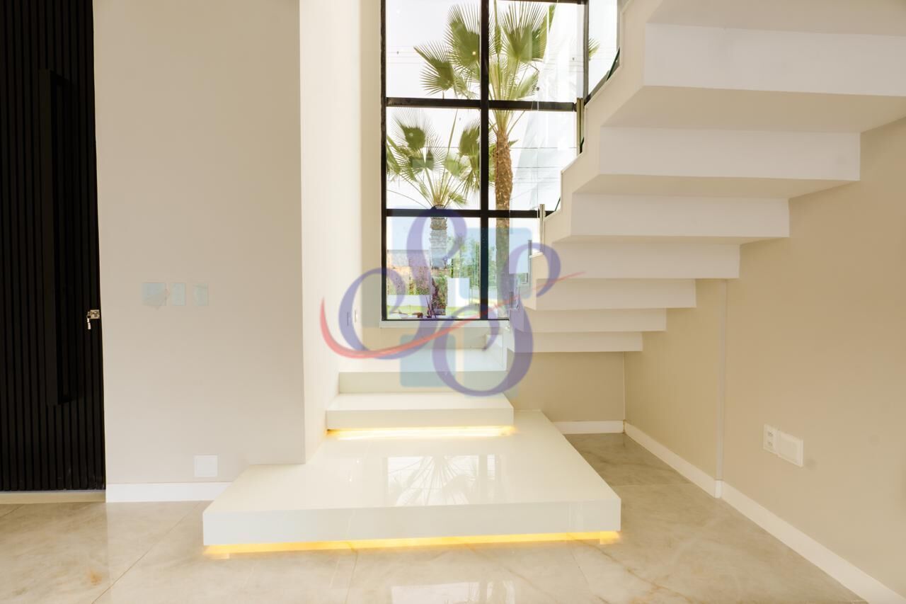 Casa de alto padrão com 291m² de área construída em um terreno de esquina de 379m², cada detalhe foi projetado para proporcionar uma experiência única de bem-estar e elegância. Ao entrar, você se encanta com a integração perfeita dos espaços. Sala, copa e cozinha em conceito aberto, criando um ambiente amplo e sofisticado. O pé direito elevado de 6m não apenas impressiona, mas também garante uma ventilação natural impecável e uma sensação de liberdade incomparável. São 4 suítes espaçosas. E para os momentos de lazer? Um deck privativo com churrasqueira e piscina, perfeito para reunir a família e amigos com estilo e exclusividade. Os acabamentos são simplesmente impecáveis, Calacata Matarazoo e super nano glass, materiais nobres que agregam sofisticação e durabilidade. A pele de vidro na fachada confere imponência e modernidade, enquanto a iluminação inteligente com interruptores smart traz tecnologia e praticidade ao seu dia a dia. E não para por aí! A casa está situada no condomínio Terras 3, que oferece lazer completo, segurança 24h e infraestrutura de alto padrão, garantindo o melhor para você e sua família. Localização privilegiada na Cidade Alpha! Um dos endereços mais desejados, com tudo o que você precisa ao seu alcance. Essa casa é um convite para viver com exclusividade. Agende sua visita agora e descubra o seu novo lar!
