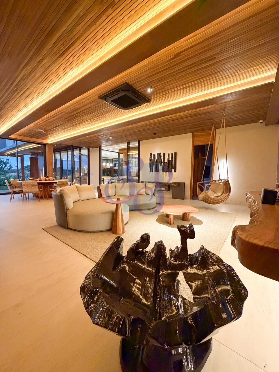 Ampla casa com porteira fechada de alto padrão com no condomínio Vert no Eusébio! Localizada em terreno de 900m² de frente para o lago, com 600m² de área construída. Possui 5 suítes, dependência de serviço e ambientes amplo com pé-direiro elevado. Sala de estar e jantar. Projeto moderno em concreto protendido, acabamentos sofisticados como madeira freijó, esquadrias de alto padrão, quartzito e porcelanato em grandes formatos. Área de lazer com piscina de borda infinita voltada para o lago, lounge seco e espaço gourmet independente com estrutura para churrasqueira e cinema. Totalmente mobiliada e climatizada com sistema de som premium. Possui ainda energia solar, iluminação em LED, fechadura digital com faceID e paisagismo assinado com irrigação automatizada. Uma casa exclusiva que une luxo, tecnologia e conforto em um cenário privilegiado!
